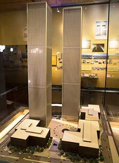 Model replica of the WTC complex as shown in the current museum. Notice the 47-story WTC7 isn't shown.